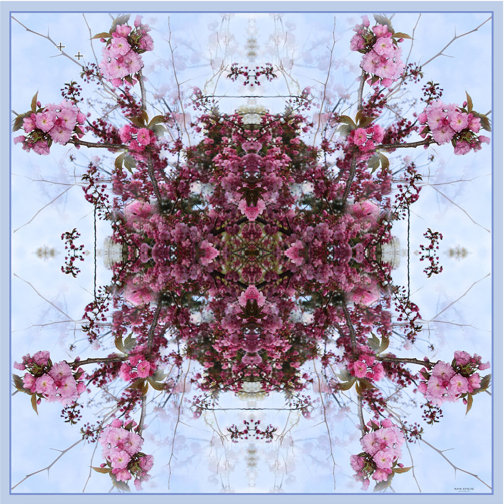 Cherry Blossoms Silk Twill Scarf with Straw Boater Hat